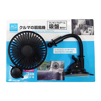 AQ. クルマの扇風機 吸盤アーム取付け ブラック
