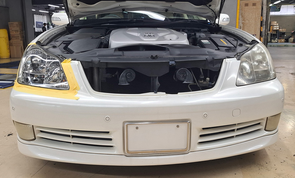 ヘッドライトカバーをポリッシュ[磨き]、ヘッドライトカバーの透明感が戻りヘッドライトの光度もアップします。※コーティング剤は使用しません。